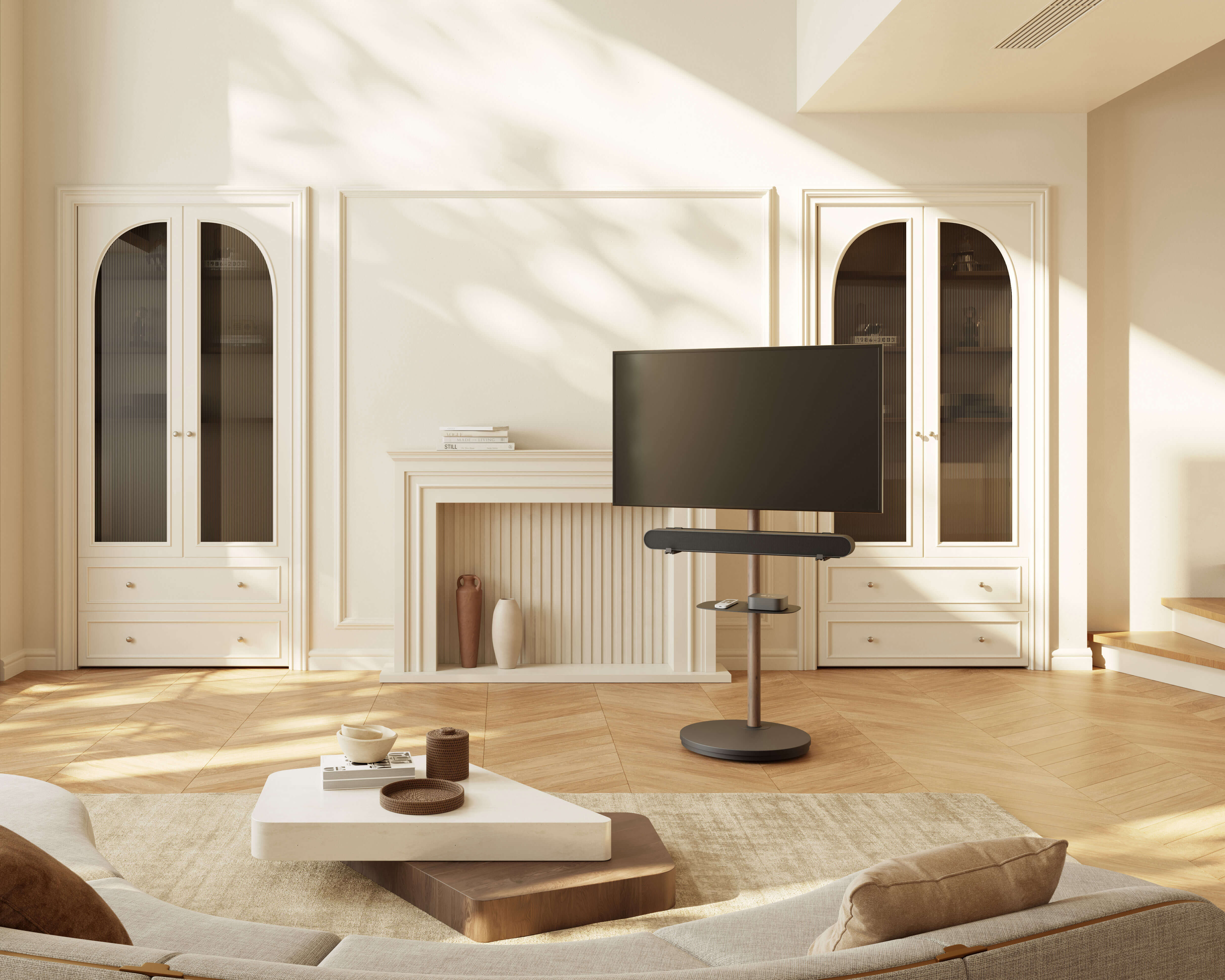 Note: The screen rotation function of the Master V2 Pro TV stand is only suitable for TVs with a central VESA mounting point.